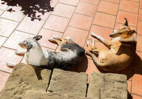 Die Hunde wissen genau, wo hier im Haus die kühlsten Liegeplätze sind! Aaaaber, oh weh: “Steigen Sie niemals über Ihren Hund! Er soll aufstehen und dem Alpha den Weg frei machen!” Tja, und ich freue mich darüber, dass sie entspannt liegen bleiben, wenn ich über sie steige!! 30. Juni 2025