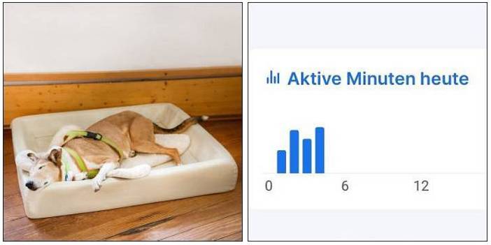 Wenn unsere alte Biene die Nacht zum Tag macht…. Biene trägt ihr Tractive Halsband rund um die Uhr. Das hat den Vorteil, dass auch Aktivitätsdaten angezeigt werden. Heute zum Beispiel von 0 Uhr bis morgens um 3 oder so. Sie wandert dann ziellos umher, hängt zwischen Stuhlbeinen fest und kommt aus Zimmerecken nicht heraus. Tagsüber holt sie den fehlenden Schlaf nach – ich eher nicht 🙂 :