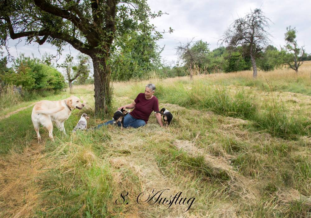 21. August 2025 Die Bettbegleithunde wünschen eine…. Ich freue mich immer sehr, wenn aus Welpenkäufern Freunde werden. Besonders gut gelang das bei unserem N-Wurf. Obwohl die Hunde mit ihren Menschen zwischen der Schweiz und der Eifel leben, trafen sie sich nun schon zum dritten Mal! Zum ersten Mal konnte auch ich dabei sein und es war wunderschön, den kompletten 6er-Wurf wiederzusehen. Vielen Dank, dass ihr das möglich machtet und ich freue mich schon aufs nächste Mal! Im Vordergrund Abba, die auf mich zuläuft 😉