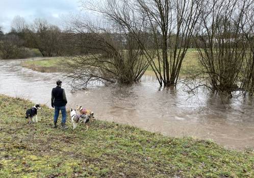 Ich sage immer beim Collie ist Freude am Wasser ein gelerntes Verhalten. Mangels Möglichkeiten haben es meine nie gelernt. Und ehrlich gesagt, gibt es immer wieder Situationen, wo ich einfach nur froh darüber bin. Hier gab es in 24 Stunden über 20 Liter Niederschlag und aus dem harmlosen kleinen Bach wurde ein durchaus reißender Strom. In keiner Sekunde musste ich mir Sorgen machen, dass meine Hunde dort hineingehen würden! Und das ist gut so! 22. Februar 2026 Zwei Wochen trächtig…. oder?? Dann warten wir mal (ungeduldig) zwei weitere Wochen 🙂 !