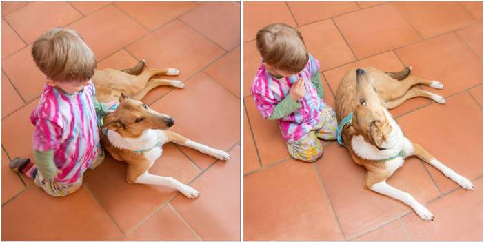 “Sind Kurzhaarcollies kinderlieb?” wurde ich neulich wieder gefragt. Nein, sie kommen nicht “kinderlieb” auf die Welt. Wobei es vielleicht durchaus Rassen gibt, die rassebedingt noch mehr Langmut mitbringen als ausgerechnet so ein Kurzhaarcollie. Meine Hunde leben nicht mit Kleinkindern zusammen. Die Enkel leben in Mainz und Dresden und sind nicht regelmäßig hier. Deshalb freue ich mich sehr, wie gut das inzwischen klappt. Für die junge Abba war das Baby kein Problem, das Krabbelkind aber durchaus. Und später das rennende und schreiende Kleinkind. Ich verbrachte viel Zeit mit Schönfüttern. Und mit Management. Abba trägt meist immer noch das Hausgeschirr, manchmal mit Hausleine dran. Es ist eigentlich nicht mehr wirklich nötig, aber es schadet auch nicht. Und natürlich gehört auch eine gute Aufsicht dazu. Vor allem, wenn die Kinder nur Besucher sind…. 22. März 2026 Wie meine Mutter immer sagte: “Wer es nicht sah, bemerkte es kaum!” 🙂