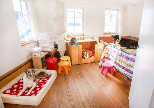 Wenn die Kindeskinder da sind, gibt es abends ABAM. Die Hunde finden das eine gute Sache!