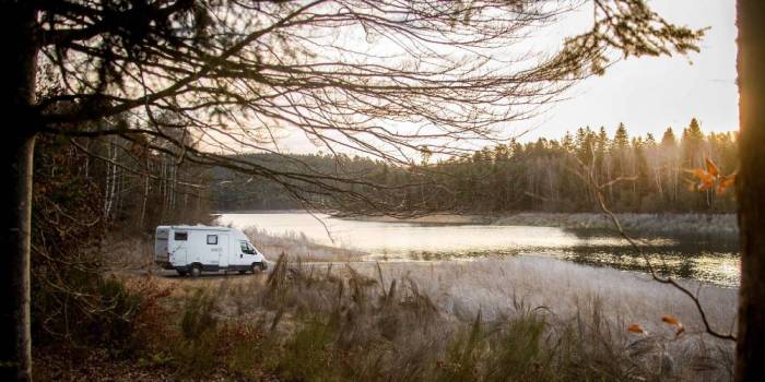 Durch die zahlreichen Buchten gibt es ständig wechselnde Ausblicke. Der See ist ringsum von Wald umgeben und nicht umsonst hat er den Beinamen “Petit Canada”. Auch an Polen/Masuren fühlten wir uns erinnert – mit dem positiven Unterschied, dass Wald und See in Frankreich absolut müllfrei war! Ein weiteres Video vom 31.12.2023: Und noch eins vom 31.12.2025: